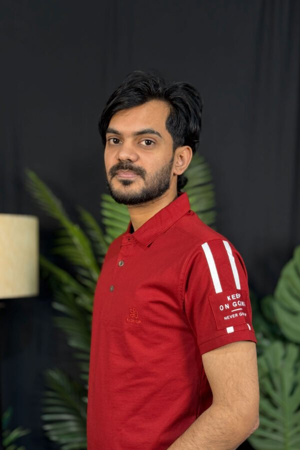 Mercerized Polo T-Shirt-Maroon with Off-White